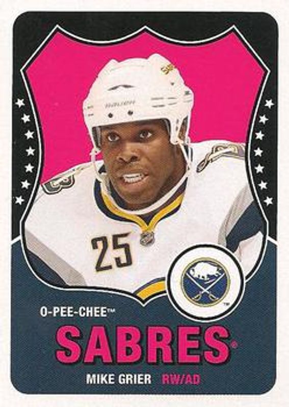 The Mike Grier 2010 O-Pee-Chee #43 Retro card is 1 of 5 Mike Grier's card variations in the 2010 O-Pee-Chee set being tracked by Sports Card Investor, including Base, Retro Blank Back, Retro Rainbow, and Retro Black Rainbow /100.