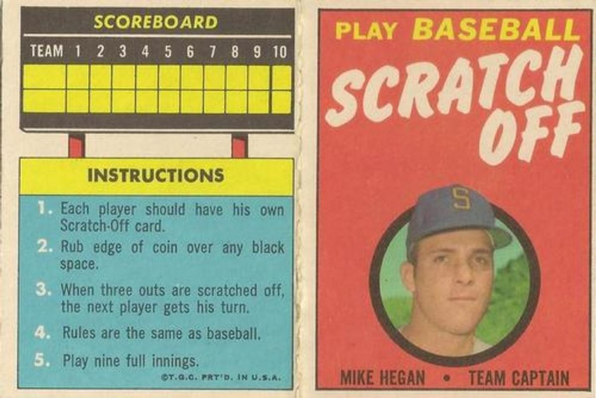 The Mike Hegan 1970 Topps Scratch Offs card is 1 of 2 Mike Hegan's card variations in the 1970 Topps set being tracked by Sports Card Investor, including Base.