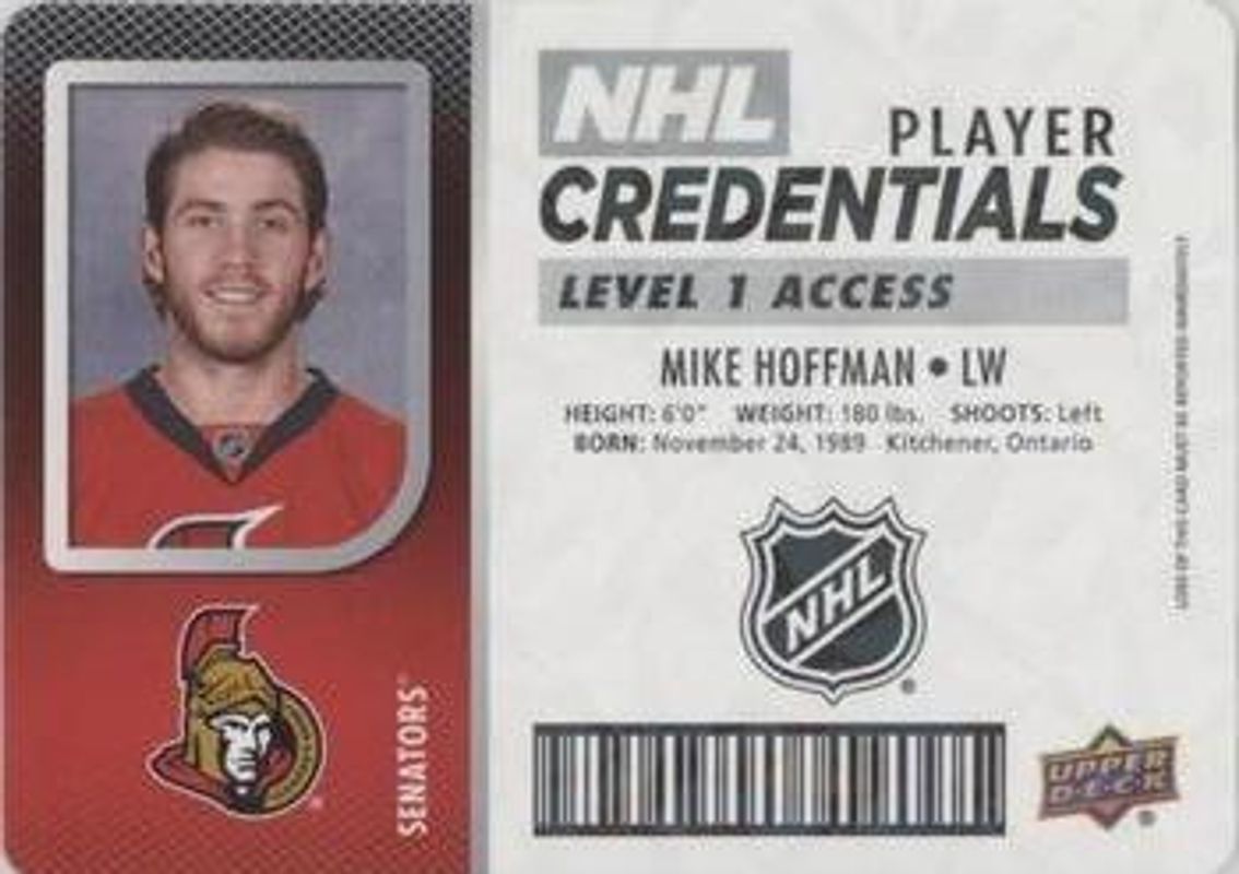 Mike Hoffman 2017 Upper Deck MVP #NHL-MH NHL Player Credentials Level 1 Access RAW Price Guide