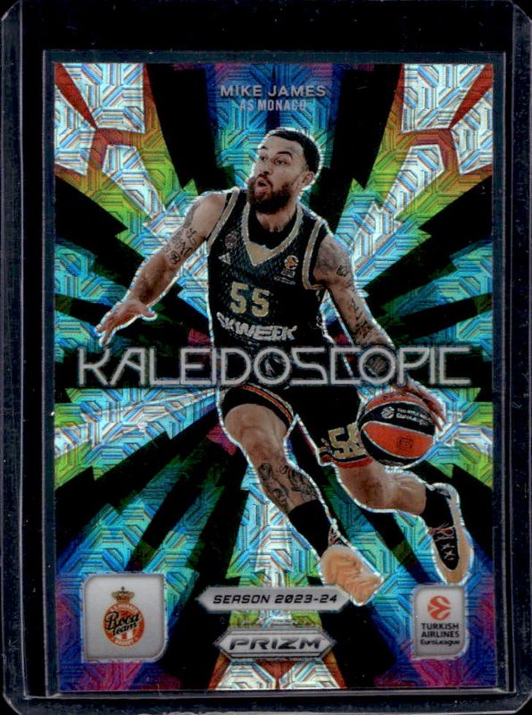 The Mike James 2023 Prizm EuroLeague #3 Kaleidoscopic - Mojo /25 card is 1 of 29 Mike James' card variations in the 2023 Prizm EuroLeague set being tracked by Sports Card Investor, including Base, Basketballs, Green, Ice, and Silver.