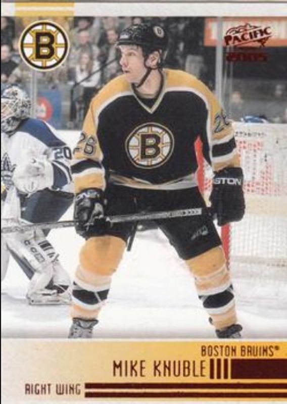 The Mike Knuble 2004 Pacific #21 Red card is 1 of 3 Mike Knuble's card variations in the 2004 Pacific set being tracked by Sports Card Investor, including Base, and Blue /250.