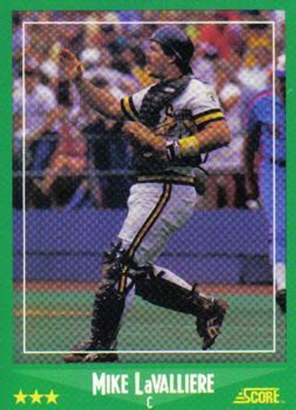 The Mike LaValliere 1988 Score #421 Glossy card is 1 of 2 Mike LaValliere's card variations in the 1988 Score set being tracked by Sports Card Investor, including Base.