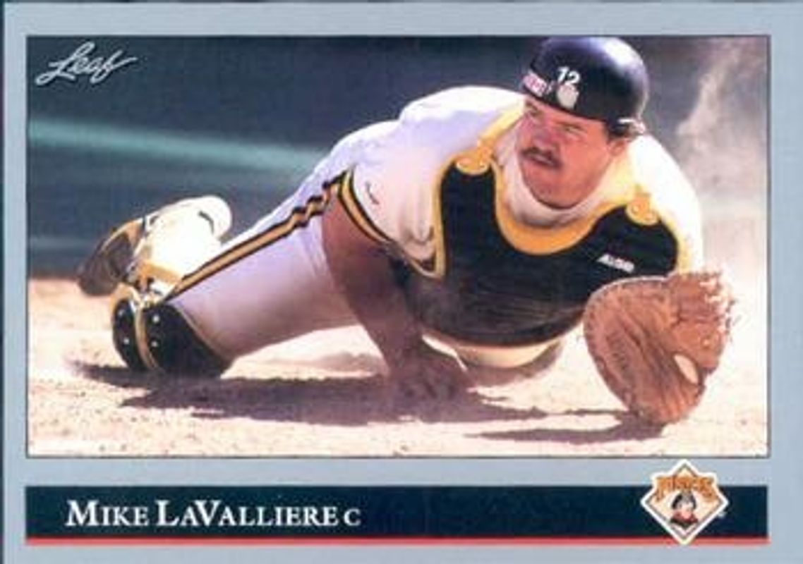 The Mike LaValliere 1992 Leaf #228 Base card is 1 of 2 Mike LaValliere's card variations in the 1992 Leaf set being tracked by Sports Card Investor, including Black & Gold.
