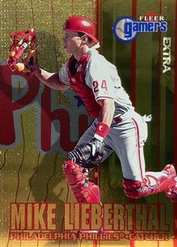 The Mike Lieberthal 2000 Fleer Gamers #40 Extra card is 1 of 3 Mike Lieberthal's card variations in the 2000 Fleer Gamers set being tracked by Sports Card Investor, including Base, and Gamers Lumber.