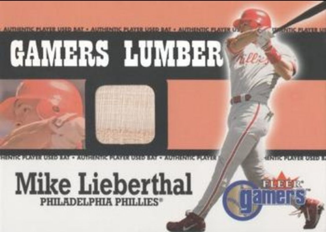 The Mike Lieberthal 2000 Fleer Gamers Gamers Lumber card is 1 of 3 Mike Lieberthal's card variations in the 2000 Fleer Gamers set being tracked by Sports Card Investor, including Base, and Extra.