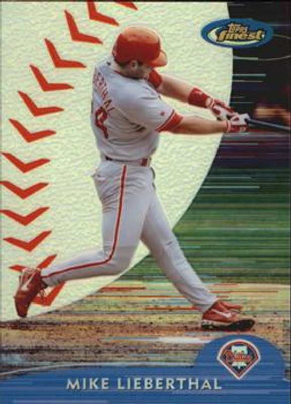 The Mike Lieberthal 2000 Topps Finest #39 Refractor /1000 card is 1 of 3 Mike Lieberthal's card variations in the 2000 Topps Finest set being tracked by Sports Card Investor, including Base, and Gold Refractor /100.