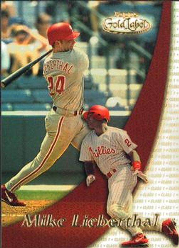The Mike Lieberthal 2000 Topps Gold Label #67 Base card is 1 of 6 Mike Lieberthal's card variations in the 2000 Topps Gold Label set being tracked by Sports Card Investor, including Class 2, Class 3, Class 1 Gold /100, Class 2 Gold /100, and Class 3 Gold /100.
