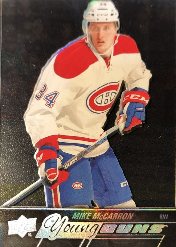 This card is 1 of 7 Mike McCarron's card variations in the 2015 Upper Deck set being tracked by Sports Card Investor, including Young Guns Base, Young Guns - Jumbo, Young Guns - Foil, Young Guns - UD Exclusives /100, and Young Guns - UD Midnight /25.