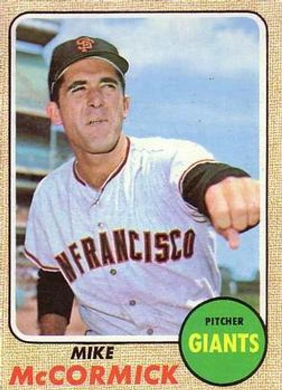 The Mike McCormick 1968 Topps #400a Base card is 1 of 3 Mike McCormick's card variations in the 1968 Topps set being tracked by Sports Card Investor, including Base, and Game.