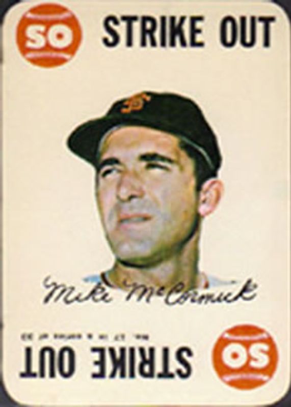 The Mike McCormick 1968 Topps #17 Game card is 1 of 3 Mike McCormick's card variations in the 1968 Topps set being tracked by Sports Card Investor, including #400a Base, and #400b Base.