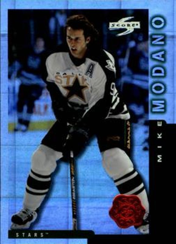 The Mike Modano 1997 Score #92 Artist's Proofs card is 1 of 5 Mike Modano's card variations in the 1997 Score set being tracked by Sports Card Investor, including #262 Base, #92 Base, #92 Dallas Stars Score Sheet, and #92 Golden Blades.