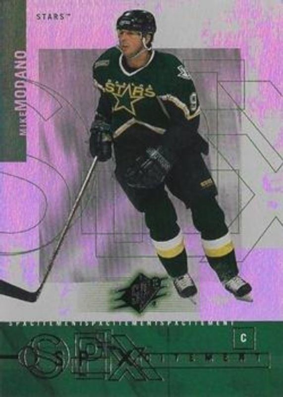 The Mike Modano 2000 SPx #X5 SPxcitement card is 1 of 7 Mike Modano's card variations in the 2000 SPx set being tracked by Sports Card Investor, including #21 Base /1500, #85 Base /1500, #85 Spectrum /50, #21 Spectrum /50, and #S3 SPxtreme.