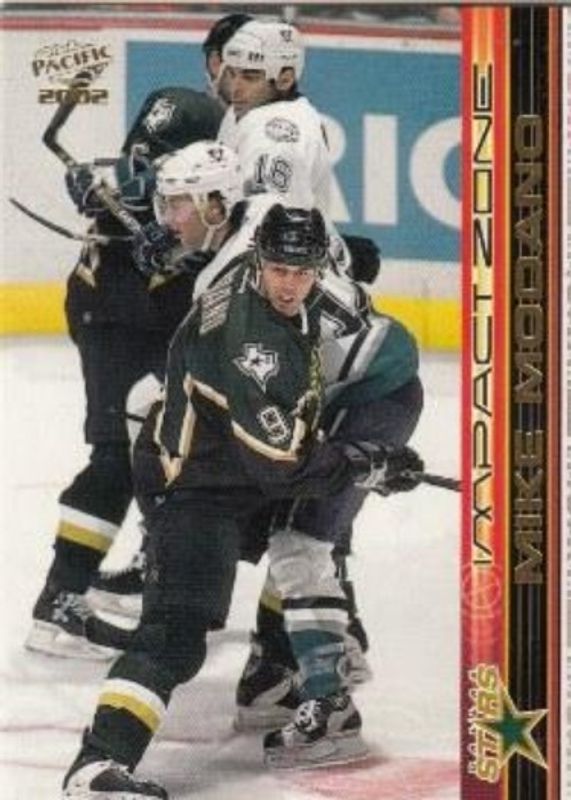The Mike Modano 2001 Pacific #10 Impact Zone card is 1 of 12 Mike Modano's card variations in the 2001 Pacific set being tracked by Sports Card Investor, including Base /500, Retail LTD /149, Hobby LTD /99, Arena Exclusives /50, and Extreme LTD /49.