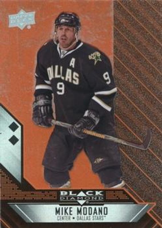 The Mike Modano 2014 Upper Deck Black Diamond #137 Orange card is 1 of 4 Mike Modano's card variations in the 2014 Upper Deck Black Diamond set being tracked by Sports Card Investor, including Base, Ruby /50, and Sapphire /1.