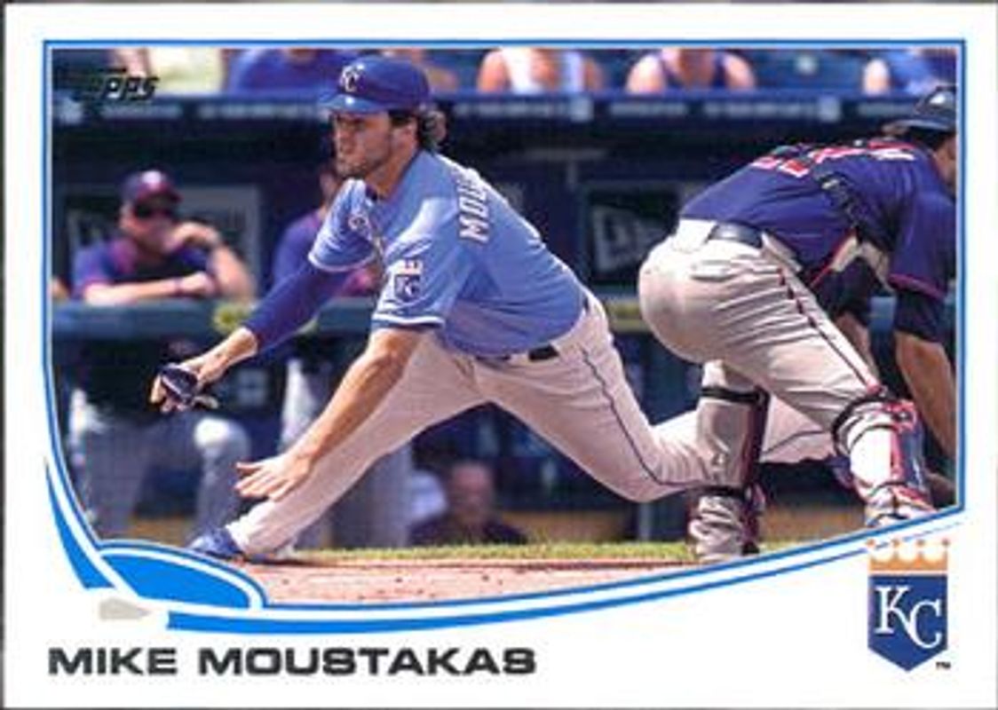 The Mike Moustakas 2013 Topps #100a Base card is 1 of 25 Mike Moustakas' card variations in the 2013 Topps set being tracked by Sports Card Investor, including Base, Chase It Down, Chasing History Relics, Chasing the Dream, and Chasing The Dream Relics.