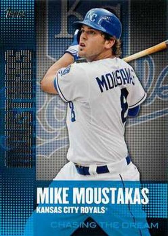 The Mike Moustakas 2013 Topps #CD-25 Chasing the Dream card is 1 of 25 Mike Moustakas' card variations in the 2013 Topps set being tracked by Sports Card Investor, including #100b Base, #100a Base, #CD-6 Chase It Down, #CHR-MIM Chasing History Relics, and #CDR-MMO Chasing The Dream Relics.