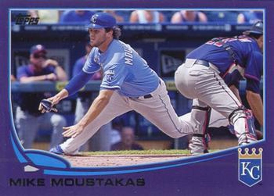 The Mike Moustakas 2013 Topps #100 Purple card is 1 of 25 Mike Moustakas' card variations in the 2013 Topps set being tracked by Sports Card Investor, including #100b Base, #100a Base, #CD-6 Chase It Down, #CHR-MIM Chasing History Relics, and #CD-25 Chasing the Dream.
