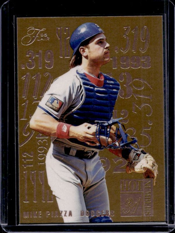 The Mike Piazza 1995 Flair #7 Hot Numbers card is 1 of 4 Mike Piazza's card variations in the 1995 Flair set being tracked by Sports Card Investor, including Base, Infield Power, and Today's Spotlight.