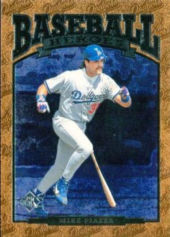 The Mike Piazza 1996 SP #87 Baseball Heroes card is 1 of 7 Mike Piazza's card variations in the 1996 SP set being tracked by Sports Card Investor, including Base, All Star Game Promos, Marquee Matchups, Marquee Matchups die-cut, and Special FX.