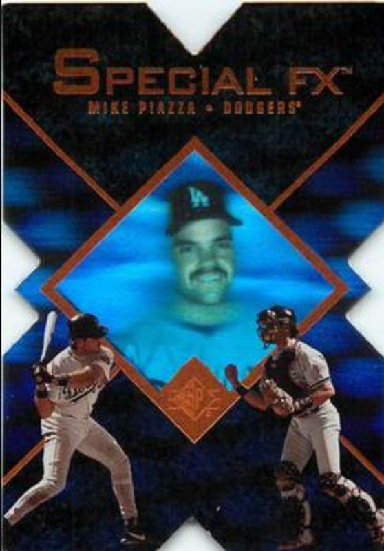 The Mike Piazza 1997 SP #5 Special FX card is 1 of 5 Mike Piazza's card variations in the 1997 SP set being tracked by Sports Card Investor, including Base, Inside Info, Marquee Matchups, and Game Film /500.