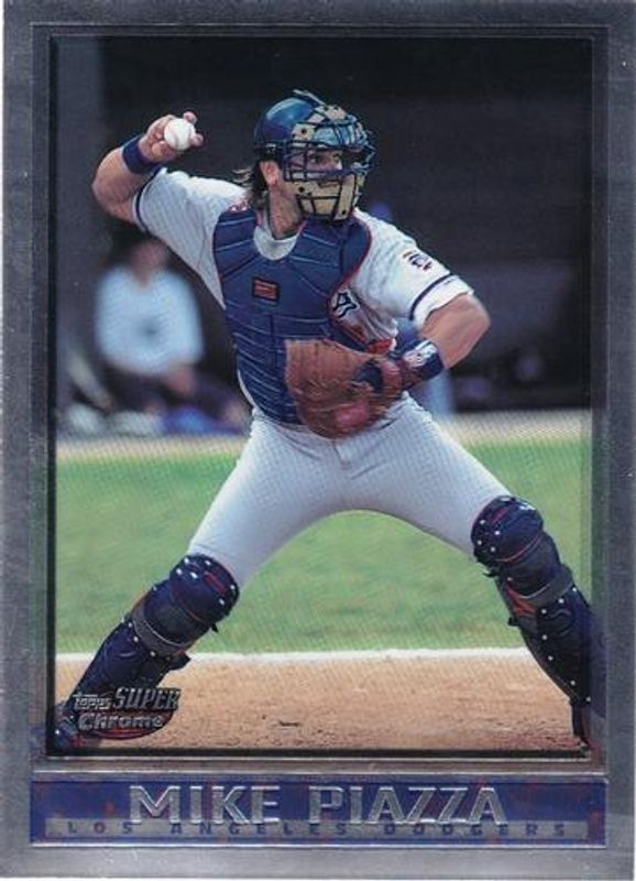 The Mike Piazza 1998 Topps SuperChrome #11 Base card is 1 of 2 Mike Piazza's card variations in the 1998 Topps SuperChrome set being tracked by Sports Card Investor, including Refractor.