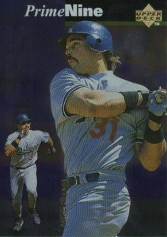 The Mike Piazza 1998 Upper Deck #PN12 Prime Nine card is 1 of 28 Mike Piazza's card variations in the 1998 Upper Deck set being tracked by Sports Card Investor, including #605 Base, #13 Base, #681 Base, #681a Base, and #149 Base.
