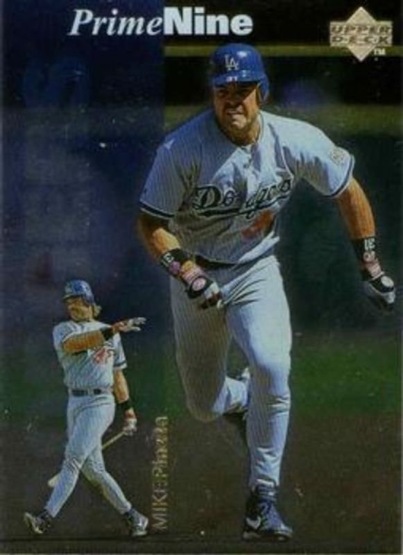 The Mike Piazza 1998 Upper Deck #PN13 Prime Nine card is 1 of 28 Mike Piazza's card variations in the 1998 Upper Deck set being tracked by Sports Card Investor, including #605 Base, #13 Base, #681 Base, #681a Base, and #149 Base.