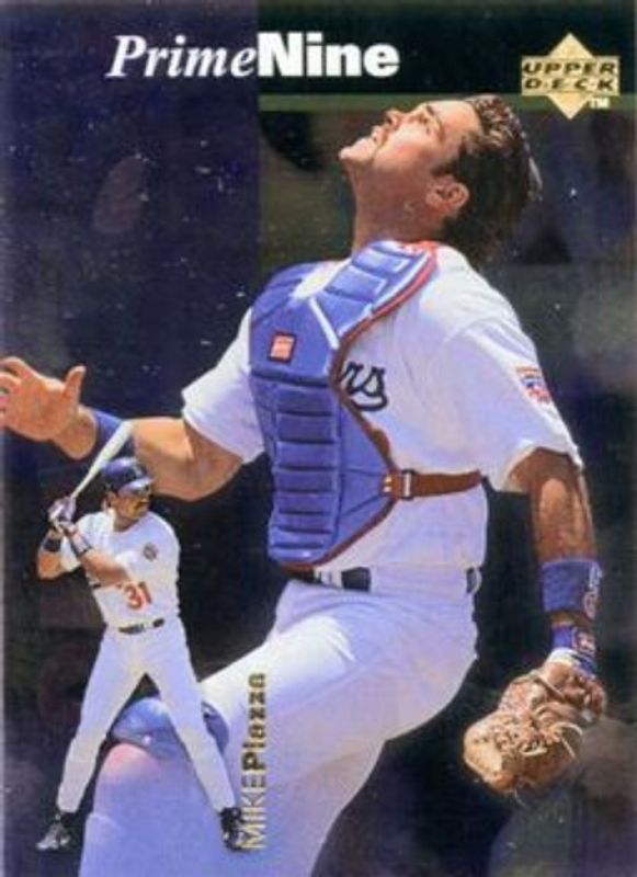 The Mike Piazza 1998 Upper Deck #PN14 Prime Nine card is 1 of 28 Mike Piazza's card variations in the 1998 Upper Deck set being tracked by Sports Card Investor, including #605 Base, #13 Base, #681 Base, #681a Base, and #149 Base.