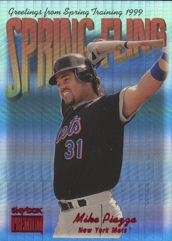 The Mike Piazza 1999 Skybox Premium #292 Spring Fling - Star Rubies /50 card in Raw condition has not changed in price in the last 30 days and was last sold for $53.00 .