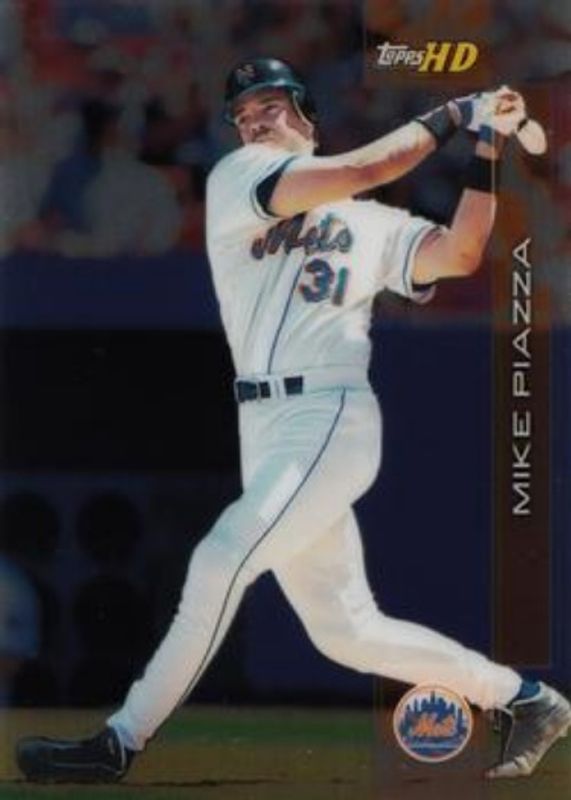 The Mike Piazza 2001 Topps High Definition (HD) #13 Platinum /199 card is 1 of 6 Mike Piazza's card variations in the 2001 Topps High Definition (HD) set being tracked by Sports Card Investor, including #107 Base, #13 Base, #GD6 Game Defined, #GD6 Game Defined Aluminum, and #107 Platinum /199.