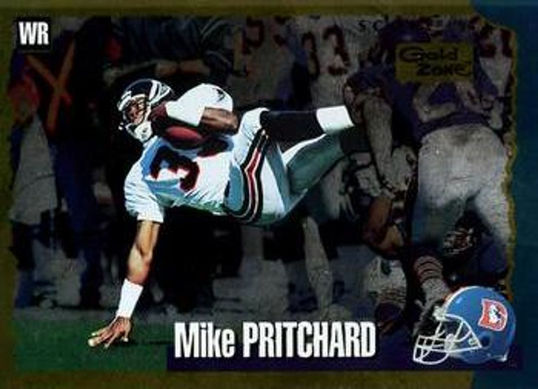 The Mike Pritchard 1994 Score #252 Gold Zone card is 1 of 2 Mike Pritchard's card variations in the 1994 Score set being tracked by Sports Card Investor, including Base.