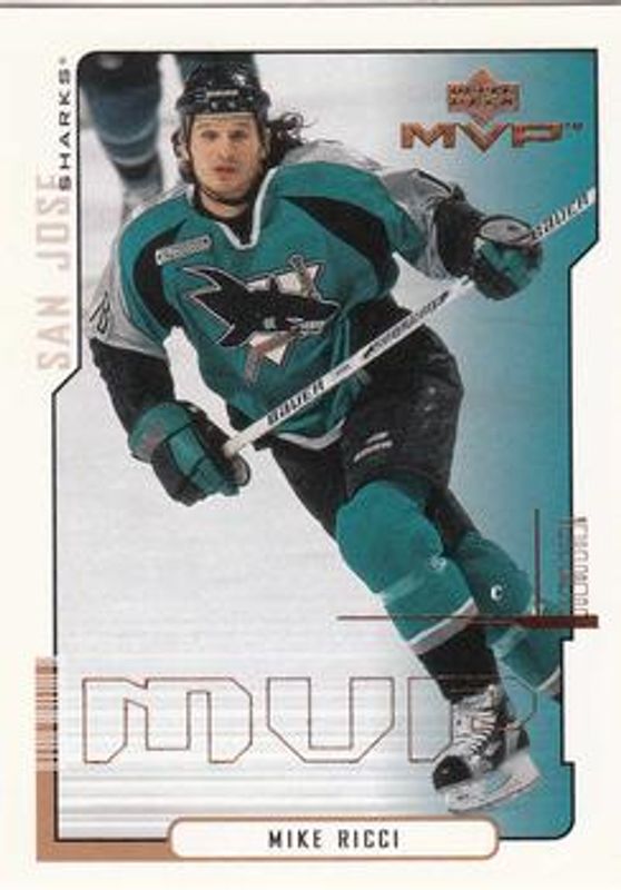 The Mike Ricci 2000 Upper Deck MVP #149 Base card is 1 of 4 Mike Ricci's card variations in the 2000 Upper Deck MVP set being tracked by Sports Card Investor, including Third Star, Second Star /100, and First Star /25.