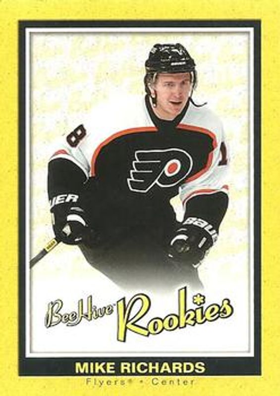 The Mike Richards 2005 Upper Deck Beehive #116 Base Rookie card is 1 of 7 Mike Richards' card variations in the 2005 Upper Deck Beehive set being tracked by Sports Card Investor, including Beige, Blue, Gold, Red, and Matte /25.