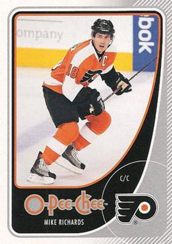 The Mike Richards 2010 O-Pee-Chee #348 Base card is 1 of 8 Mike Richards' card variations in the 2010 O-Pee-Chee set being tracked by Sports Card Investor, including Retro, Retro Blank Back, Retro Rainbow, Retro Black Rainbow /100, and In Action.