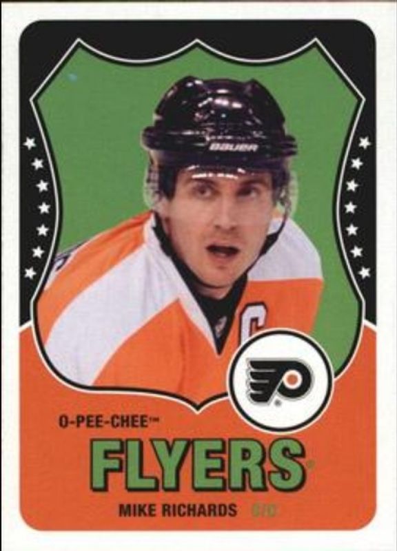 The Mike Richards 2010 O-Pee-Chee Retro Blank Back card is 1 of 8 Mike Richards' card variations in the 2010 O-Pee-Chee set being tracked by Sports Card Investor, including Base, Retro, Retro Rainbow, Retro Black Rainbow /100, and In Action.