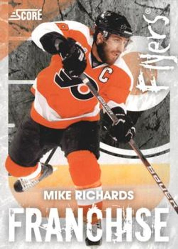 The Mike Richards 2010 Score #22 Franchise card is 1 of 8 Mike Richards' card variations in the 2010 Score set being tracked by Sports Card Investor, including Base, 20th Anniversary, French Back, Glossy, and Canada Greats.