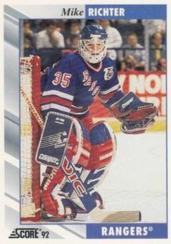 The Mike Richter 1992 Score #5 Base card is 1 of 3 Mike Richter's card variations in the 1992 Score set being tracked by Sports Card Investor, including Samples, and USA Greats.