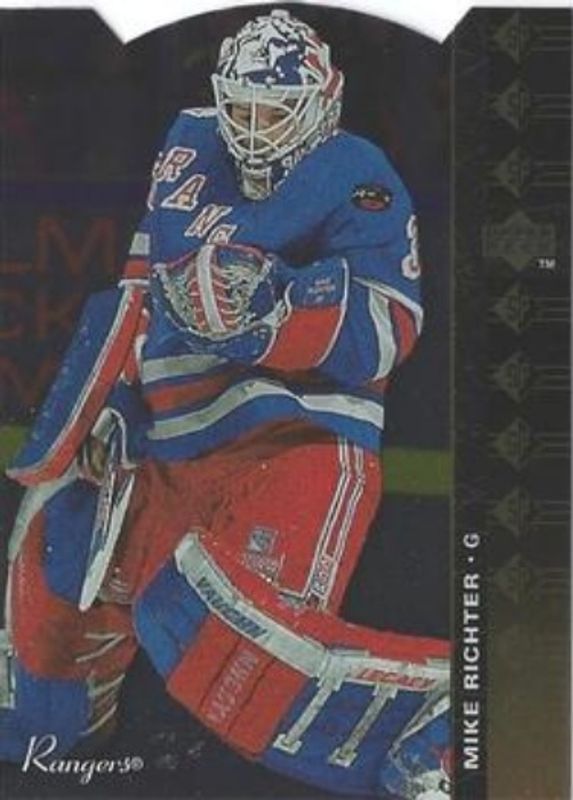 The Mike Richter 1994 Upper Deck #SP-52 SP die-cut card is 1 of 6 Mike Richter's card variations in the 1994 Upper Deck set being tracked by Sports Card Investor, including Base, Electric Ice, Predictors Hobby, Predictors Hobby Gold Exchange, and SP.