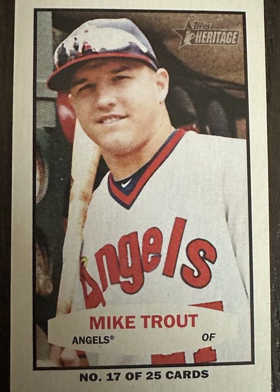 This card is 1 of 15 Mike Trout's card variations in the 2014 Topps Heritage set being tracked by Sports Card Investor, including Base, Action Variation (Batting), Black Back, Black Border, and Chrome - Purple Refractor.