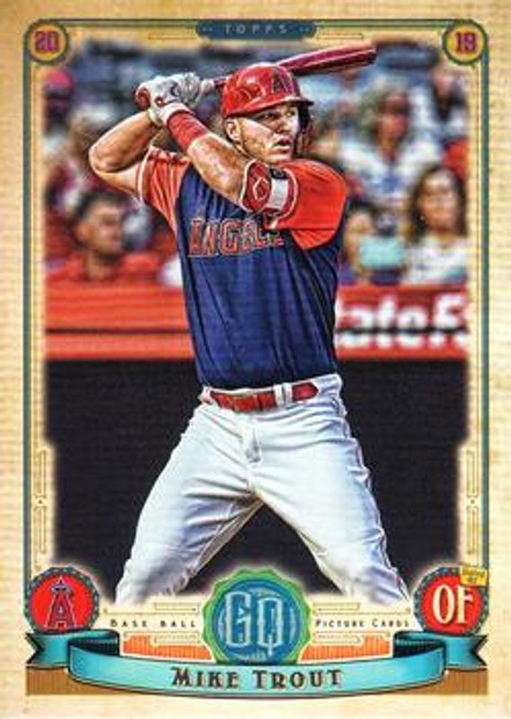 The Mike Trout 2019 Topps Gypsy Queen #1c Base card is 1 of 39 Mike Trout's card variations in the 2019 Topps Gypsy Queen set being tracked by Sports Card Investor, including #1b Base, #1 Base, #1 Bazooka Back, #1b GQ Logo Swap, and #1 GQ Logo Swap.