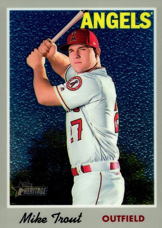 This card is 1 of 5 Mike Trout's card variations in the 2019 Topps Heritage set being tracked by Sports Card Investor, including Chrome - Refractor /570, Chrome - Black Refractor /70, Real One Autographs (Batting Stance), and Real One Autographs - Red Ink /70 (Batting Stance).