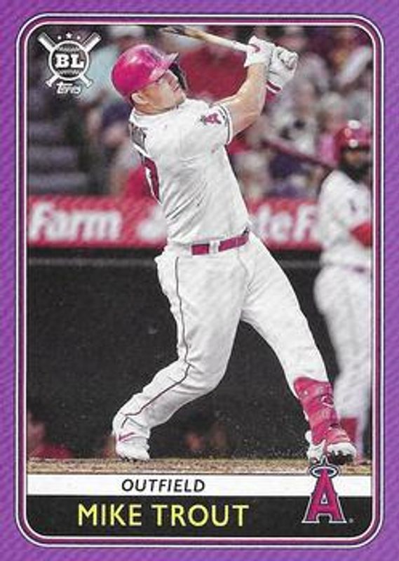 The Mike Trout 2020 Topps Big League #B1 Blaster Box Cards card is 1 of 63 Mike Trout's card variations in the 2020 Topps Big League set being tracked by Sports Card Investor, including #261 Base, #266 Base, #274 Base, #283 Base, and #285 Base.