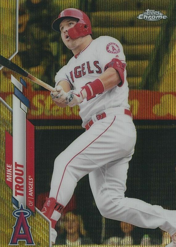The Mike Trout 2020 Topps Chrome #1 Gold Wave Refractor /50 card in Raw condition has not changed in price in the last 30 days and was last sold for $46.00 .