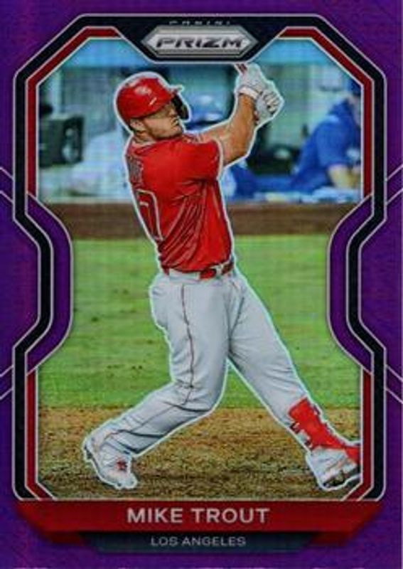 The Mike Trout 2021 Prizm #173 Purple card is 1 of 101 Mike Trout's card variations in the 2021 Prizm set being tracked by Sports Card Investor, including Base, Blue, Blue Velocity, Carolina Blue, and Cosmic Haze.