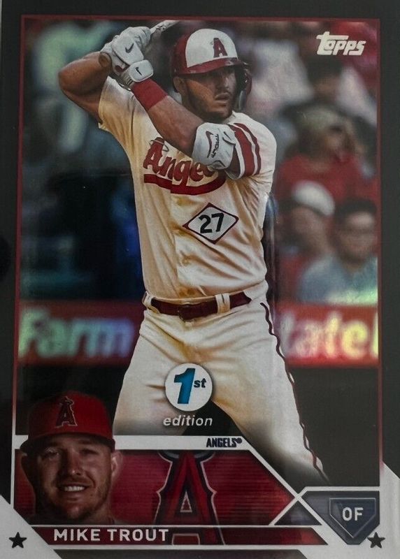 This card is 1 of 9 Mike Trout's card variations in the 2023 Topps 1st Edition set being tracked by Sports Card Investor, including Base, Gold Foil, Green Foil /150, Orange Foil /75, and Red Foil /50.