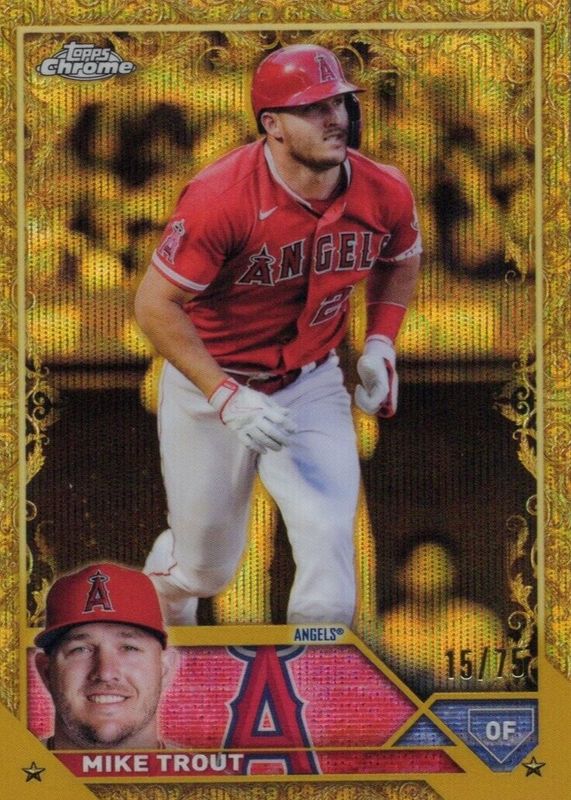 MIKE TROUT 2023 Topps Gilded Gold Wave Etch #15 /75 ANGELS MLB LEGEND 🔥🔥🔥