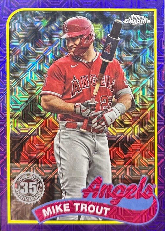 Best Prices Available For Sale of Mike Trout 2024 Topps Silver Pack #T89C-17 1989 Chrome Promo - Purple Refractor (Series 1) /75