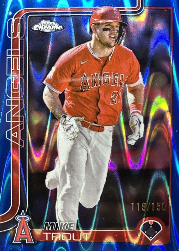2025 Topps Chrome - Mike Trout #100 Blue Raywave Refractor /150 Anaheim Angels