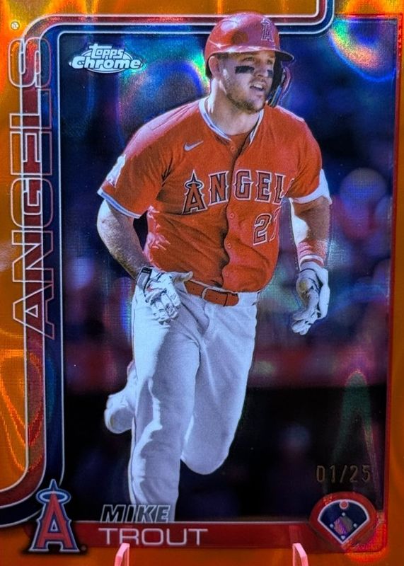 Auctions Ending Soon for Mike Trout 2025 Topps Chrome #100 Orange Lava Refractor /25 RAW