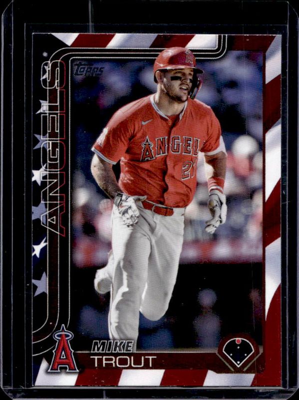 The Mike Trout 2025 Topps #200 Independence Day /76 card is 1 of 297 Mike Trout's card variations in the 2025 Topps set being tracked by Sports Card Investor, including Base, Aqua Holo Foil, Diamante Foil, Holo Foil, and Pink Diamante Foil.